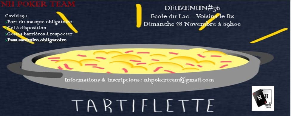 Bonzour à tous et à toutes, Le DeuZenUn#37 vous donne rendez-vous exceptionnellement le samedi 11 décembre 2021 à partir de 13h avec un repas cambodgien pour une participation de 15€ avec boissons comprises. Nous vous rappelons que le tournoi se joue en double chance avec un premier stack de 150.000$NH et un deuxième stack de 150.000$NH que vous pourrez mettre en jeu…Read More