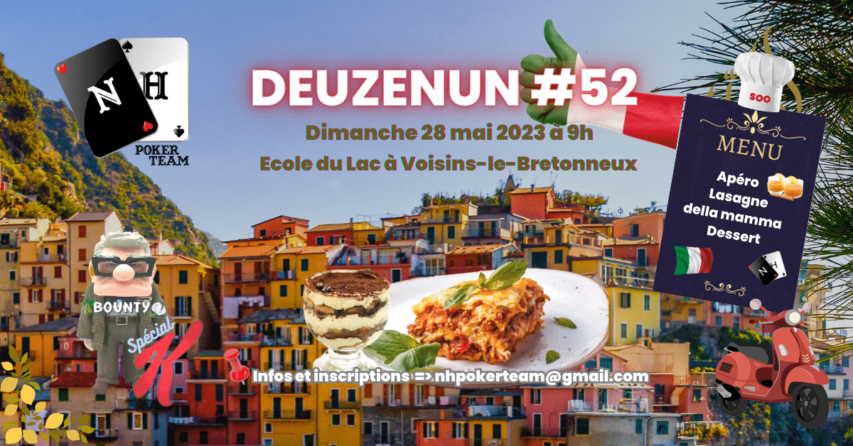 Bonzour à tous et à toutes, Le DeuZenUn#52 vous donne rendez-vous le dimanche 28 mai 2023 à partir de 09h avec un repas sur le thème italien préparé par Arsène pour une participation de 15€ avec boissons comprises.Le menu comprendra également un apéritif maison avec un amuse bouche. Nous vous rappelons que le tournoi se joue…Read More