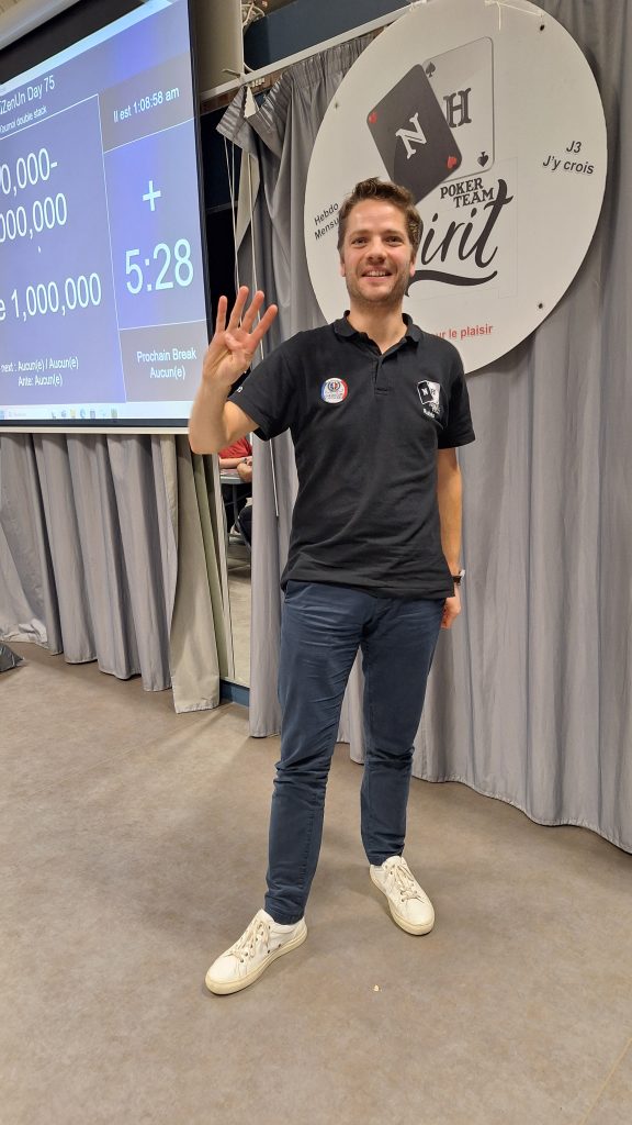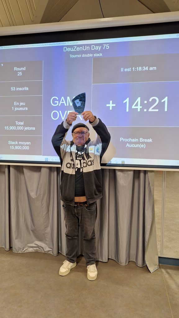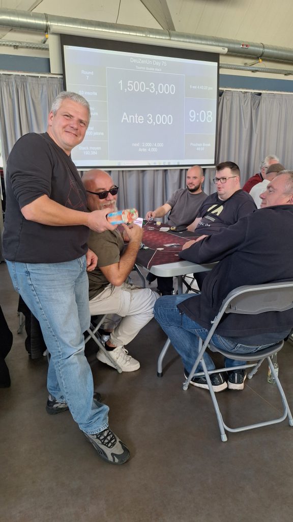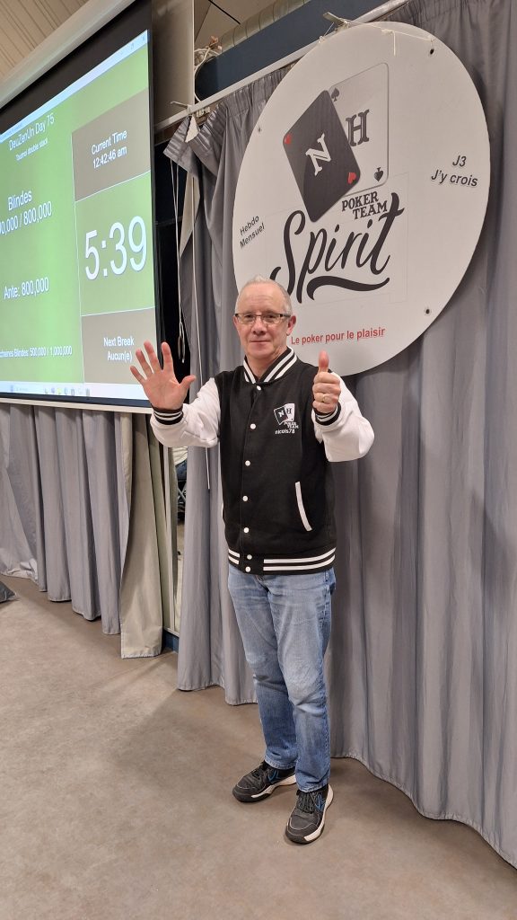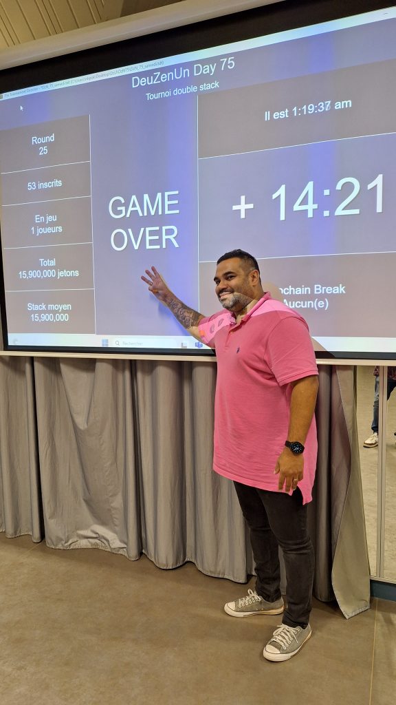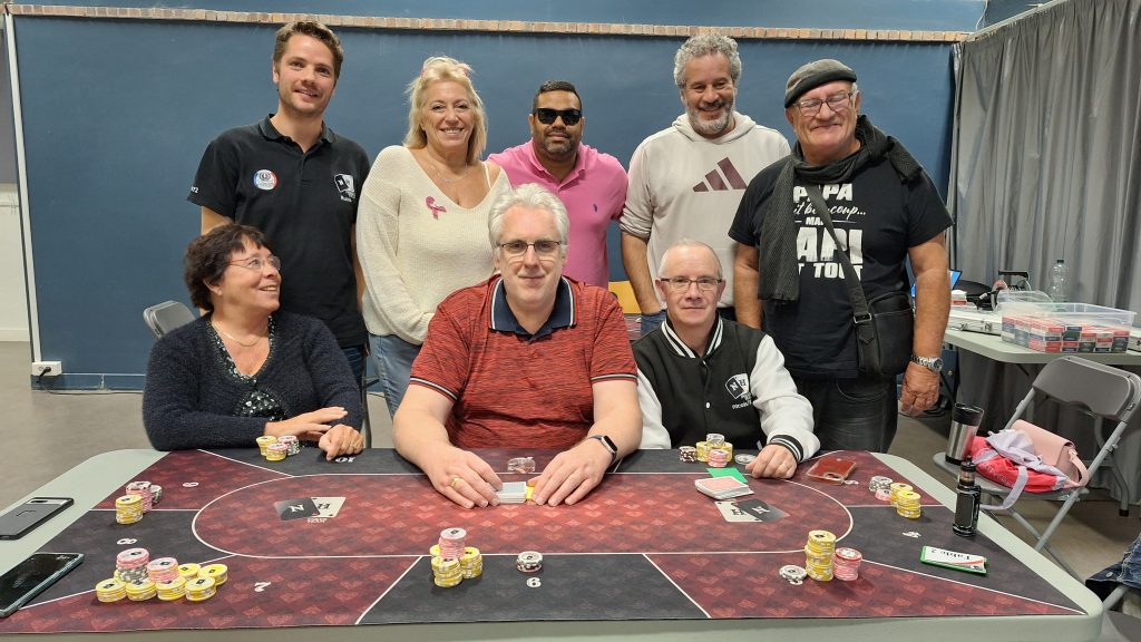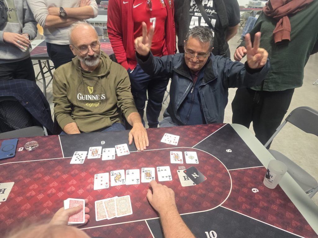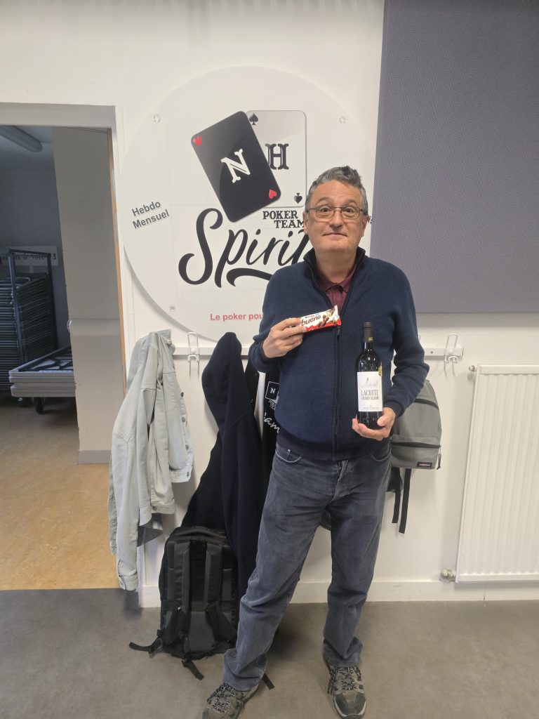 Une TABLE FINALE d’anthologie, avec MAGIC en croupier et Jean-Luc R. en background pour la gestion des tables, où un strike final de Pascal parti quasi short stack, lui a suffi pour nettoyer le podium en sa faveur.
