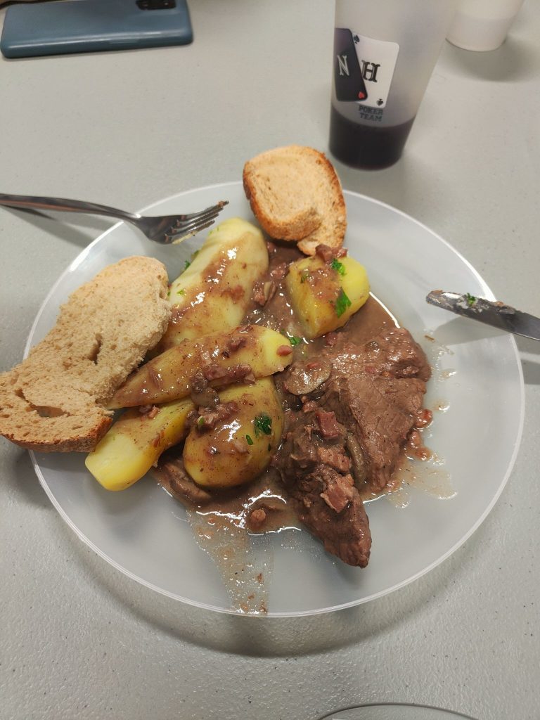 Un grand merci à Sophie, la dulcinée de Arsène, qui nous régale bien souvent avec ses plats savoureux. Ici un Boeuf Bourguignon aux saveurs d’antan qui a fait l’unanimité des palais.